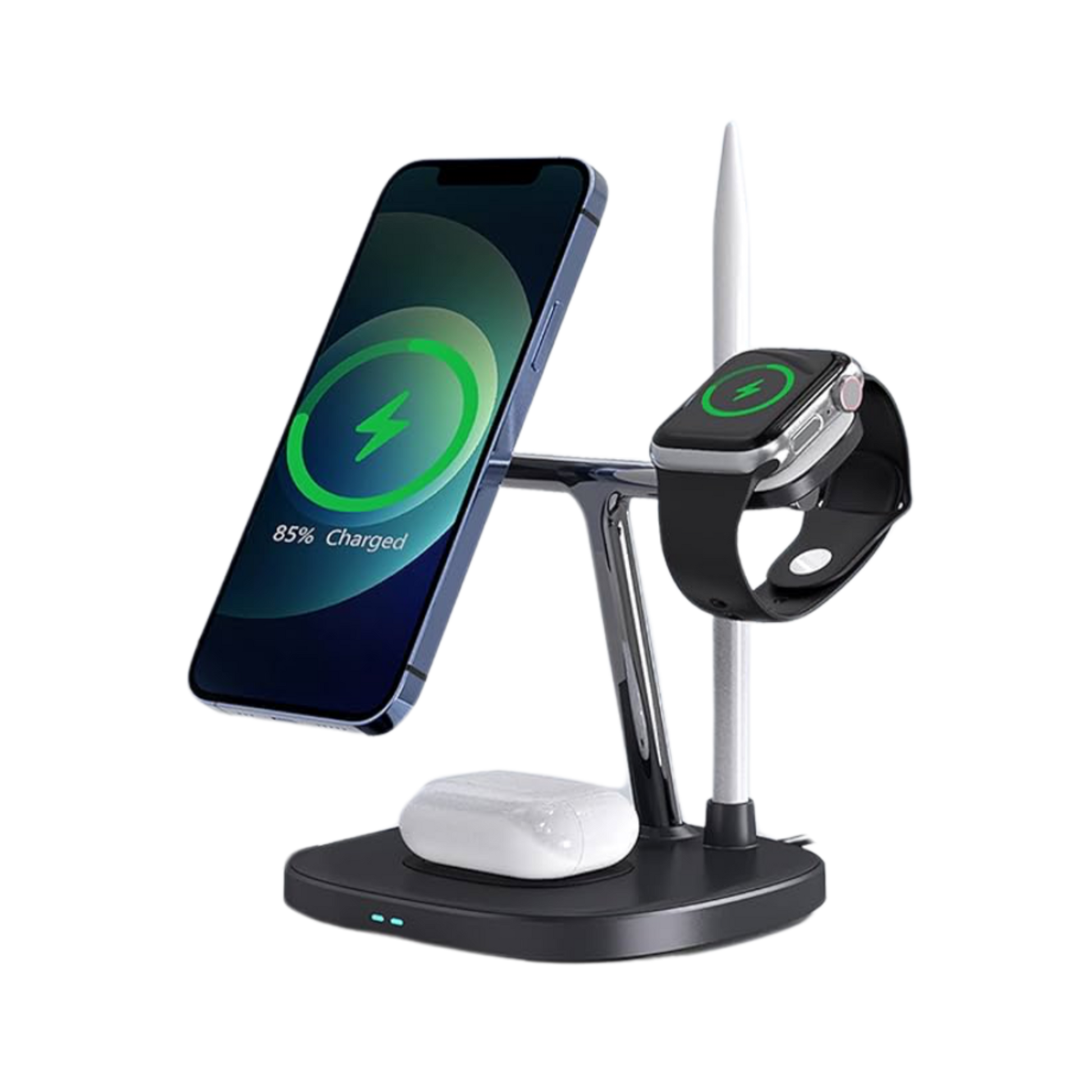 Kariko iPhone, Apple Watch, Apple Pencil dhe AirPods në të njëjtën kohë me këtë bazë elegante dhe praktike. Dizajn kompakt, karikim i shpejtë dhe organizim perfekt për çdo hapësirë.
