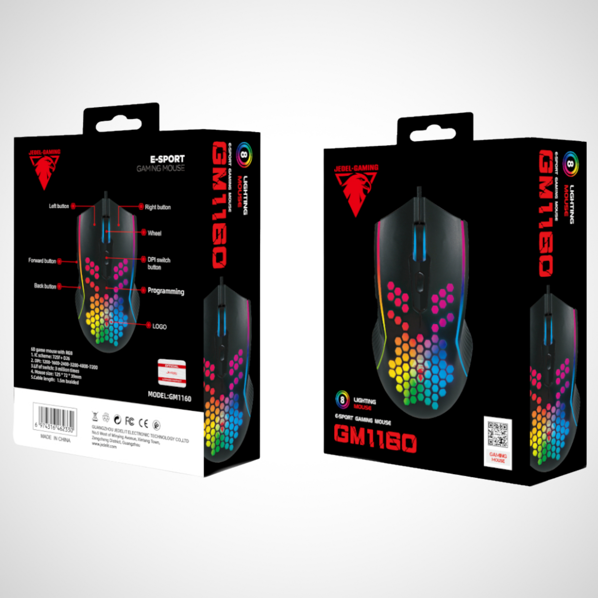 JEDEL GM1160 është një maus lojrash me performancë të lartë, i krijuar për të përmbushur nevojat e lojtarëve që kërkojnë saktësi, shpejtësi dhe stil në çdo klikim.